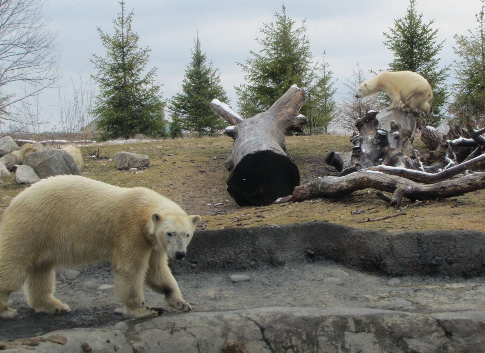 Their new home is a 13,140 square foot outdoor habitat that is four times larger than the former polar bear exhibit. They have two pools of various depths. One pool contains live fish for the bears to catch and eat. The habitat has an indoor observation room for visitors, especially welcome in the winter. The two areas can be separated if needed.