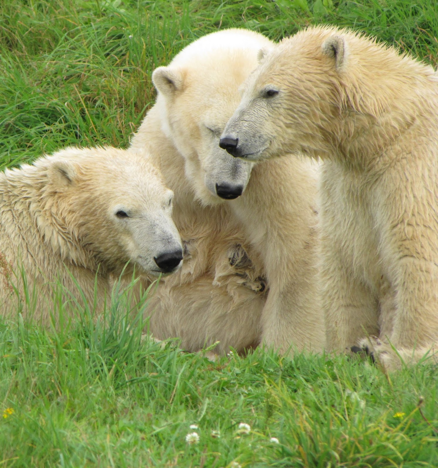 A new treatment for milk production was given to Ilka when she gave birth to Nuno and Nanu a year later, and she was able to raise the twins with no problem. When they were old enough and big enough, Siku (who was only a year older) was brought in as a playmate for the twins, and the family got along very well.
