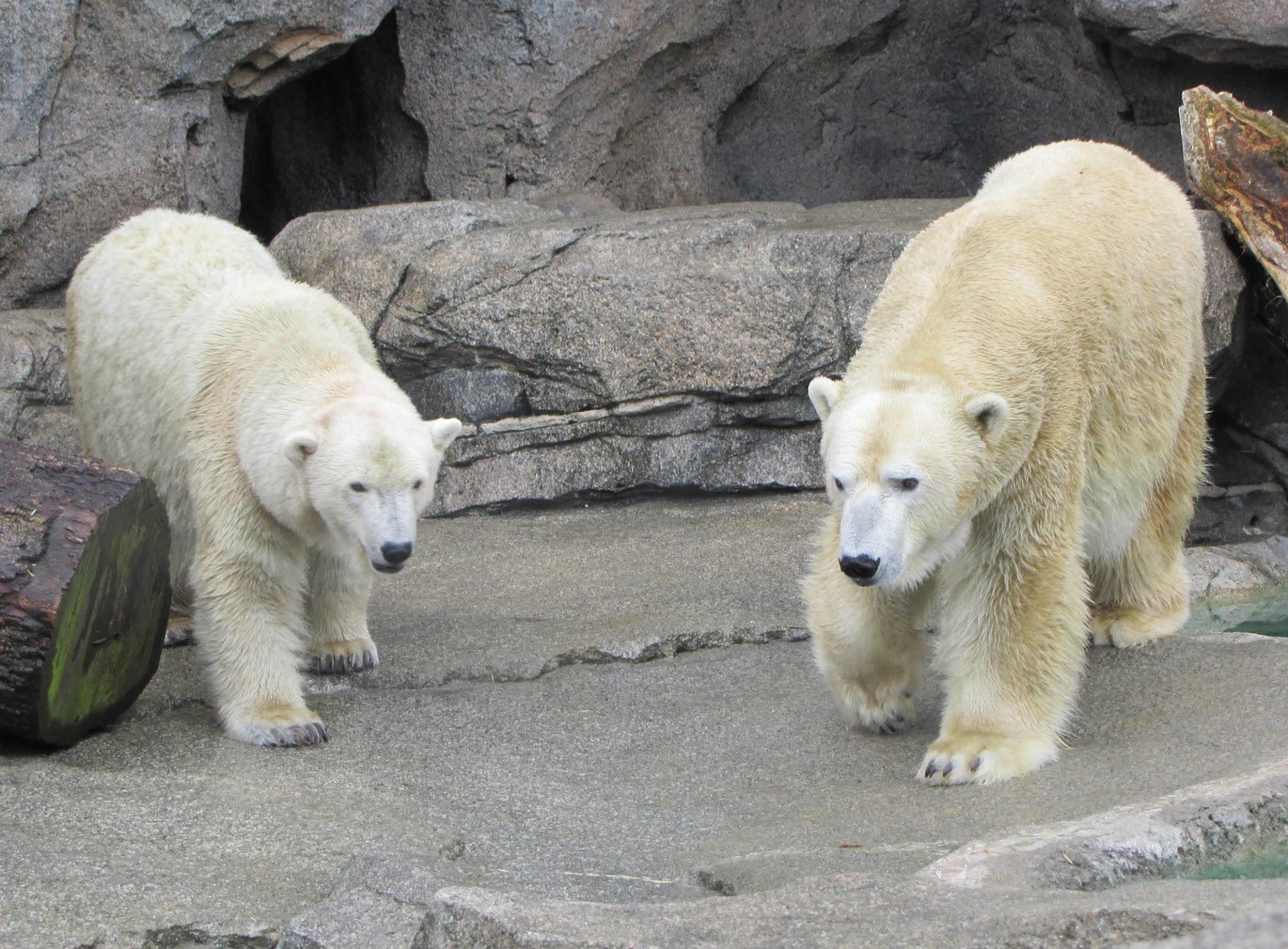 Qannik has always been on her own. The grizzly bear family, Otis, Rita and Inga, were at Glacier Run when Qannik arrived, and rotate through the two enclosures, and the downstairs bedrooms. Old lady bear Arki, grandmother of Siku, was already in Glacier Run with Qannik arrived. She passed away in 2013. Young Siku, a 2 year old male at the time, arrived shortly after Qannik in the fall of 2011, but the two were never together, and he moved to Lincoln Park Zoo in 2016.