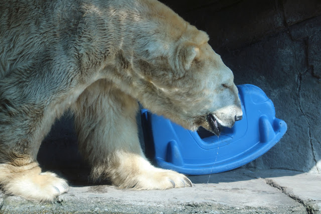 An upcoming move will split up Crystal's twins Kallik and Kallu, born in Toledo almost three years ago and currently in St. Louis. Their father is Nuka of the Detroit Zoo. Kallik will moved to the Oregon Zoo, and current resident Nora will move to the Henry Villas Zoo to be with older lady Berit. So Kallik will be alone at the Oregon Zoo and Kallu will also be alone at the St. Louis Zoo for the time being.